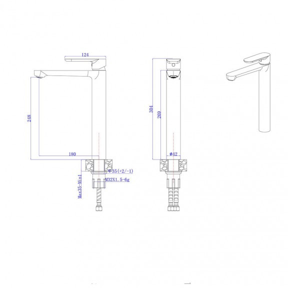 35 mm-es Sedal betétes SS304 magas mosdócsaptelep Brush Gold színben