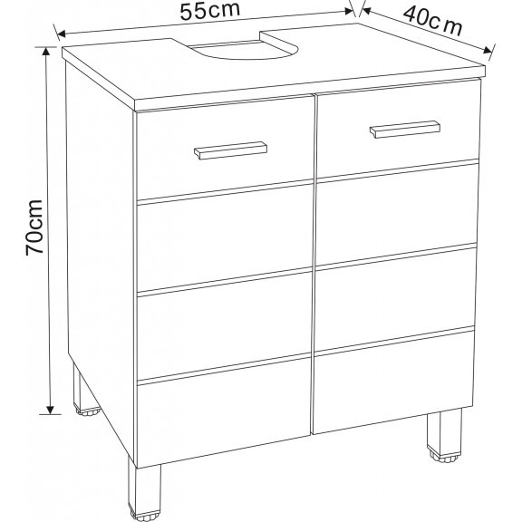 Az ICP 5077 egy modern, funkcionális fürdőszobai szekrény, amely kerámia mosdó nélkül kapható, így szabadon kombinálható egyedi mosdótípusokkal. A bútor víz- és nedvességálló anyagból készült, így különösen tartós és fürdőszobai használatra optimalizált.
