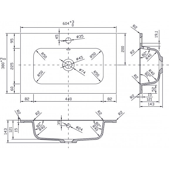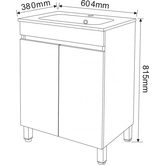 A bútorhoz tartozik egy tartós műgyanta mosdó (5981-2), valamint műanyag túlfolyókészlet (EE604). A szekrény DTC soft-close zsanérokkal szerelt, így az ajtók finoman és zajmentesen záródnak. Belső polcokat nem tartalmaz, így szabadon alakítható a tárolás módja.
