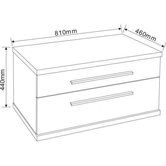 A szekrény két tágas fiókkal rendelkezik, amelyek DTC sínrendszerrel működnek – ez biztosítja a halk, puha záródást és a kényelmes használatot. A krómozott fém fogantyúk elegáns megjelenést biztosítanak, miközben jól illeszkednek a PS047 színű, fa hatású PVC felülethez, amely természetes, mégis modern hangulatot kölcsönöz a fürdőszobának.