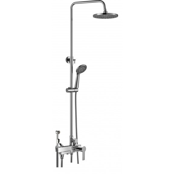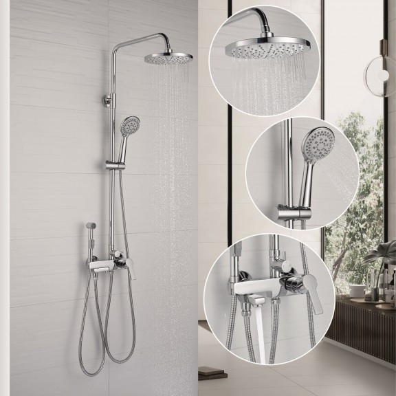 Állítható zuhanyrendszer krómozott sárgaréz csapteleppel, fejzuhannyal, kézi zuhannyal, kifolyóval és bidéfejjel