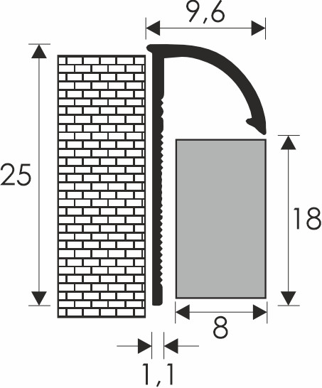 PROFILPLAST 451082501 NATUR ALU ÍVES ÉLVÉDŐ 8 mm 2,5M