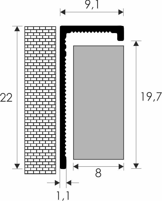 PROFILPLAST 451182505 NATUR ALU SZÖGLETES POLÍROZOTT ÉLVÉDŐ 8 mm 2,5M