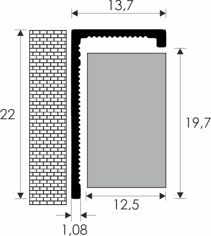 PROFILPLAST 451222505 NATUR ALU SZÖGLETES POLÍROZOTT ÉLVÉDŐ 12,5 mm 2,5M