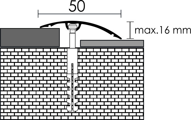 PROFILPLAST 454670907 REJTETT RÖGZÍTÉSŰ BURKOLATVÁLTÓ ELOXÁLT MATT PEZSGŐ 50 mm 0,9M